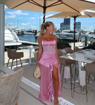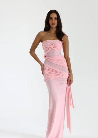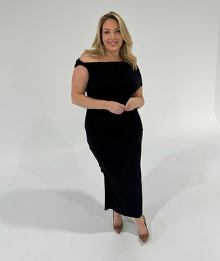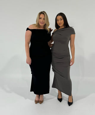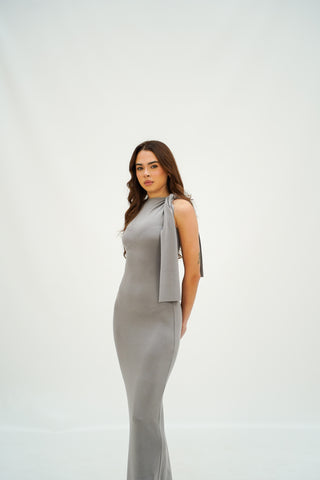 Sueded Stretch Knotted Maxi Dress in Steel Grey