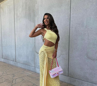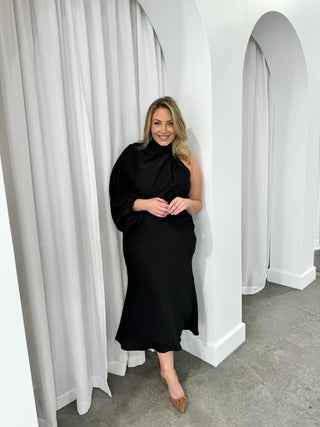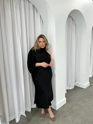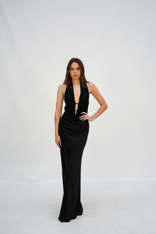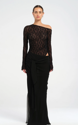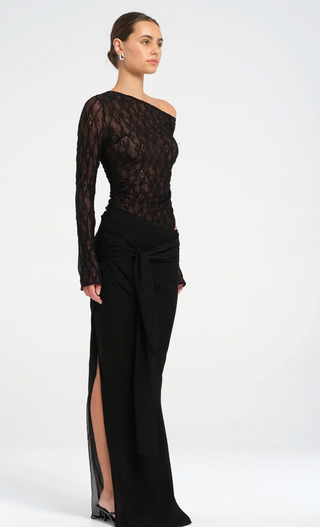 ONYX LACE KEYHOLE MAXI DRESS IN BLACK